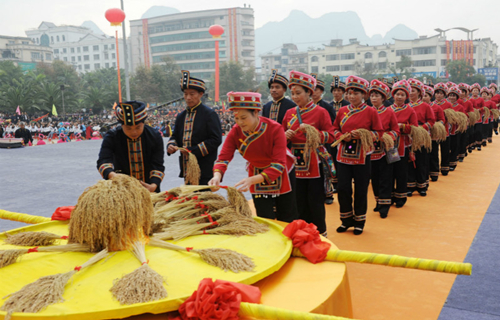 A total of 12 ethnic groups, such as Mulam, Zhuang, Miao, Yao and Dong ethnic groups, live in Luocheng. It focuses on the theme of “jointly struggling to achieve prosperity and development” in order to promote cultural exchanges and realize harmonious development among the different ethnic groups.