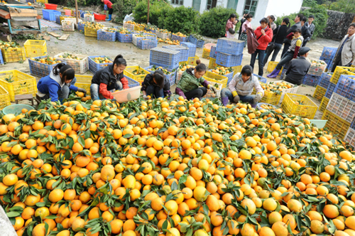 | Citrus fruit is a special local product in Luocheng. [Photo/Xinhua] |