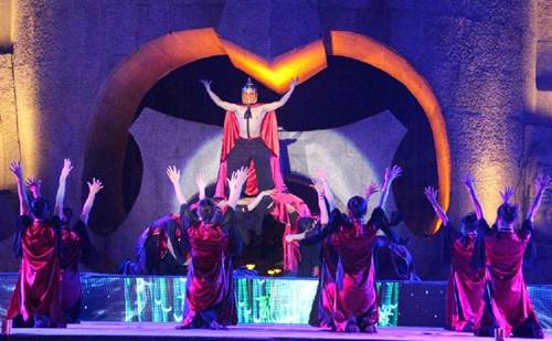 On the evening of Jan 13, the ‘Huanjiang Dazzling Night’ was held at the Ethnic Cultural Square in the Guangxi Huanjiang Maonan autonomous county.