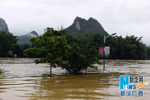 According to Hechi hydrology and water resources bureau, a flood warning was in effect in Xiaochang'an town in Luocheng.