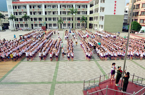 The Luocheng Mulam autonomous county's Second Primary School organized a flag-raising ceremony on June 1.