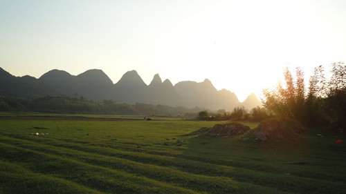 The sun rises on a green corner of Jinchengjiang district, Hechi, Guangxi Zhuang autonomous region. [Photo/jcj.gov.cn] |