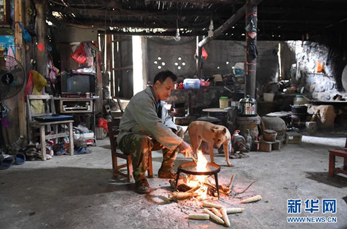 Mo Jiansheng, a Ke'ai villager, often returns to his old house believing life there is comfortable, even though he has moved to the new housing complex. [Photo by Zhou Hua/Xinhua] |