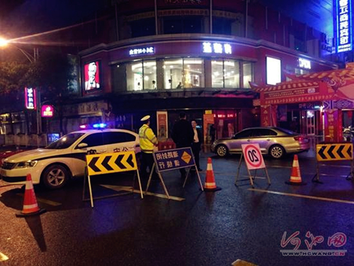 Traffic diversions are put in place through the night to ensure smooth construction. [Photo by Yang Tianyu/hcwang.cn]