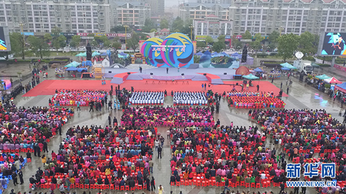 The eighth Liu Sanjie Cultural Tourism Festival is held in Yizhou, Hechi, Guangxi Zhuang autonomous region on March 29, to commemorate the famous singer Liu Sanjie. [Photo/hcwang.cn] |