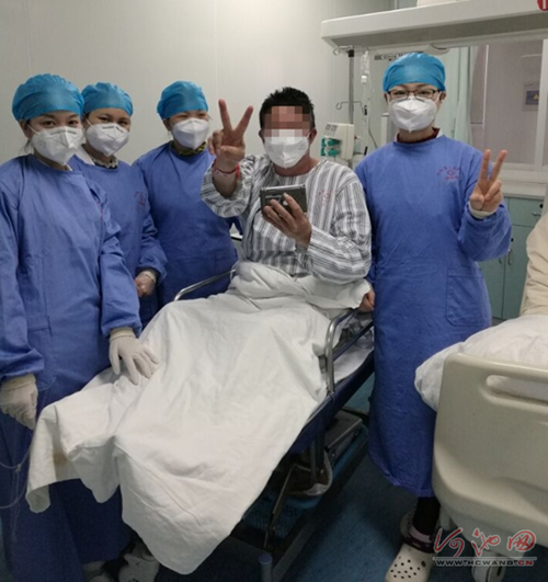 The patient, a 48-year-old male surnamed Li, was in a severe condition when sent to the hospital on March 13, with symptoms of a high fever, coughing, and blurred vision.