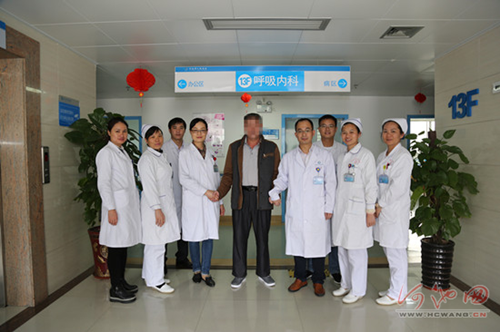 Feeling better, Li poses for a group photo with his doctors. [Photo/hcwang.cn] |