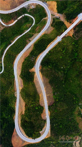 Aerial view of the highway traversing Fengshan has a jade belt-alike look. [Photo by Huang Desheng/hcwang.cn] |