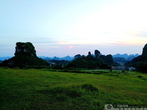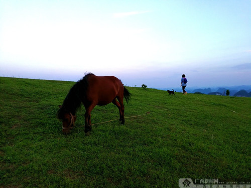 A picturesque view of Gaoshan Grassland, Jian'ai township in Luocheng Mulam autonomous county. [Photo by Liao Guangfu/gxnews.com.cn] |