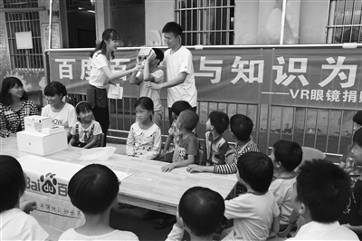 Supported by the Firefly Project, a charity program launched by Wikipedia-like platform Baidu Baike, a team of volunteer teachers from the South-Central University for Nationalities donated a set of virtual reality (VR) equipment to students of Longma village, Dahua Yao autonomous county.