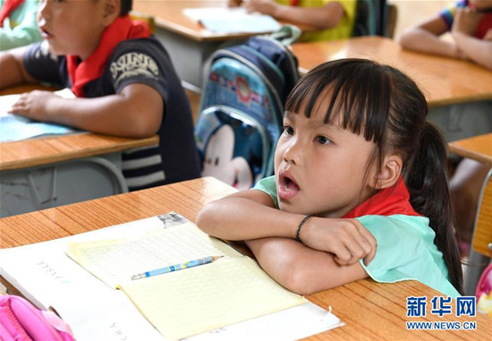 A student reads aloud at the Bading teaching spot in Yalong town, Dahua Yao autonomous county, Guangxi, Sept 7. [Photo by Zhou Hua/Xinhua News Agency] |