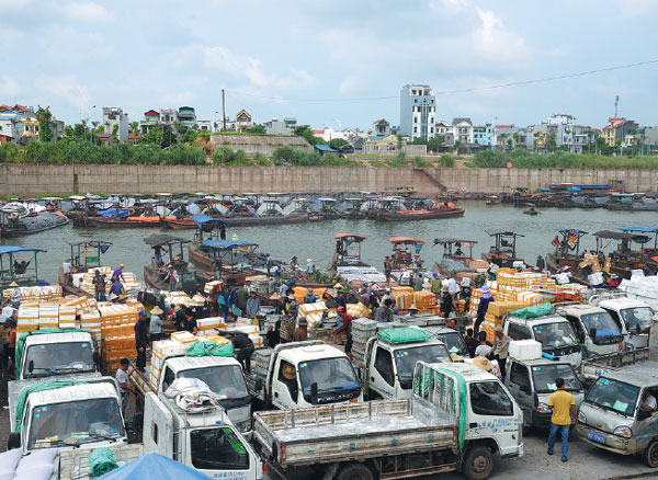 Traders unload goods at the Dongxing port in the Guangxi Zhuang autonomous region. [Provided to China Daily] |