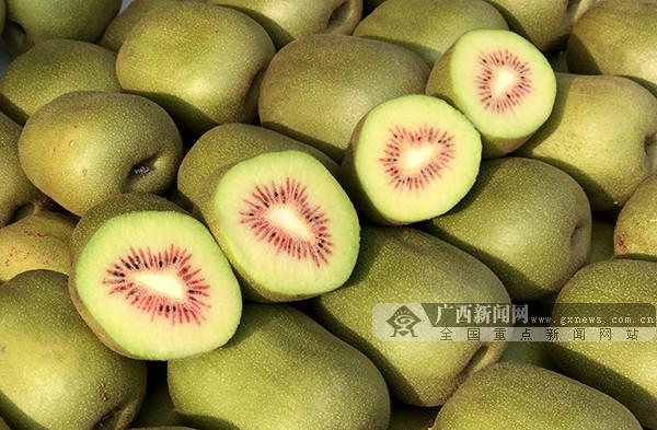 Nandan red kiwifruits are very high in sugar content, with a delicate taste as sweet as honey. [Photo by Song Yao/gxnews.com.cn] |