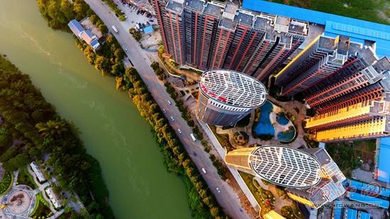 The aerial photo reveals a prosperous sight of Jinchengjiang. [Photo by Gao Dongfeng/hcwang.cn] |