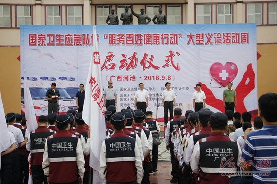 A group of 70 healthcare workers from the national health emergency team carried out a two-day free clinic activity in Hechi on Sept 8.