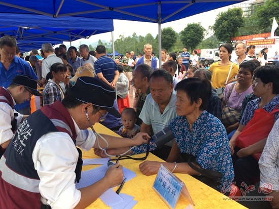 Healthcare workers set up a free medical consultation clinic for local citizens. [Photo/hcwang.cn]