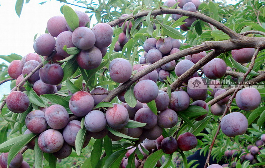 Bred from wild plum trees, the new species is called "Queen of the Plums". It has unique quality and wonderful taste. [Photo by Qin Zheng/gxnews.com] |