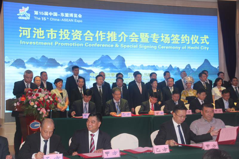 Hechi inked a total of 52 projects with aggregate investment of 34.5 billion yuan ($5 billion) at the Investment Promotion Conference and Special Signing Ceremony of Hechi city held in Nanning, capital of the Guangxi Zhuang autonomous region on Sept 13.