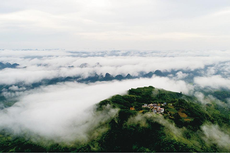 The most beautiful sea of clouds rises and falls around the Tiantai Mountain in Luocheng. [Photo by Liao Guangfu/gxlc.gov.cn] |