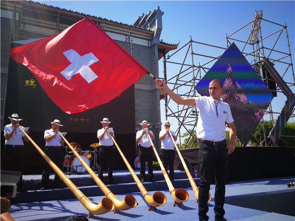 A music feast is brought by artists from Alphorn Academy of Switzerland (AAS) with alphorn. [Photo provided to chinadaily.com.cn] |