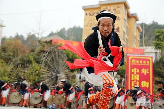 | Li Fangcai performs Hougu Dance [Photo by Fu Longqiang/hcwang.cn] |