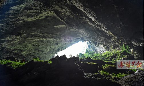 | The giant cave hall is hidden inside the valleys. [Photo/gxnews.com.cn] |