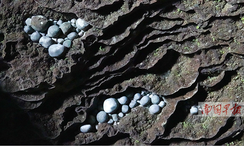 | The cave pearls lie in the deep of the cave. [Photo/gxnews.com.cn] |