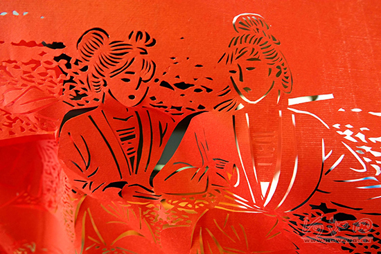 The paper-cut work depicts legendary singer Liu Sanjie's life. [Photo/hcwang.cn] |