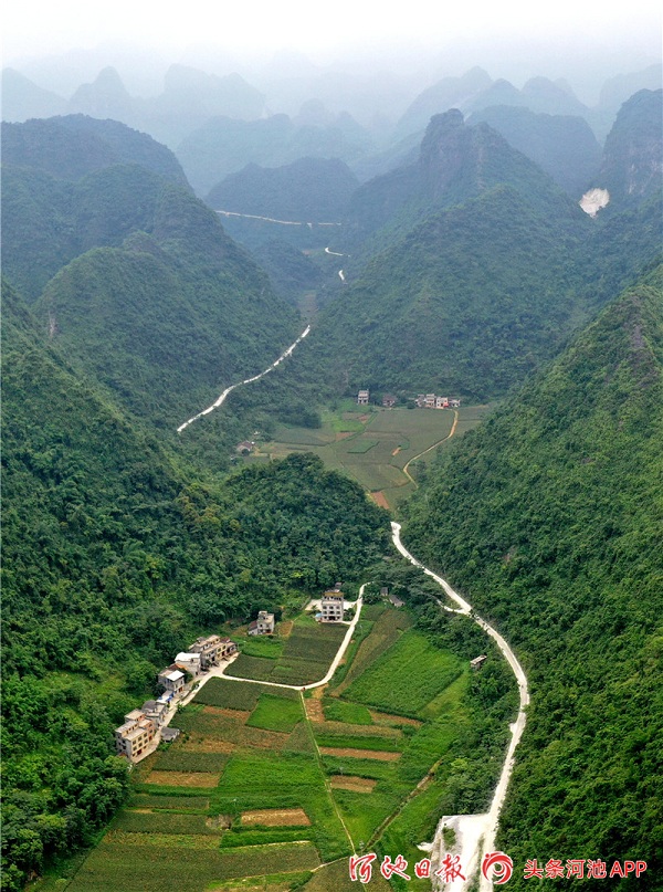 Du'an Yao autonomous county, Hechi has bolstered its infrastructure construction in recent years, especially in roads connecting to impoverished villages. From 2016 to 2019, the county invested more than 500 million yuan ($70.64 million) on newly building, repairing, and hardening 2,100 country roads spanning 2,173.26 kilometers, which greatly facilitated travelling for people living in mountainous areas.