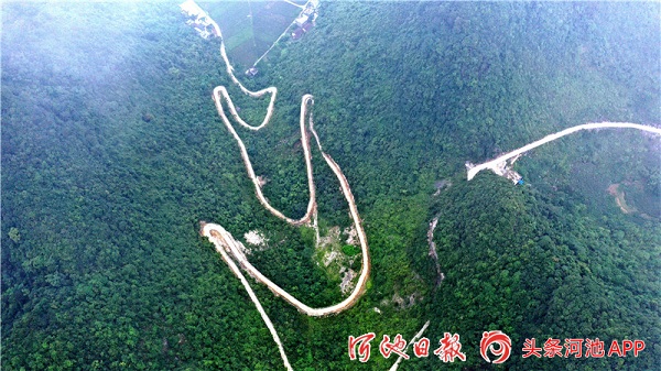 Aerial view of roads across mountains in Du'an Yao autonomous county, Hechi. [Photo/Hechi Daily] |