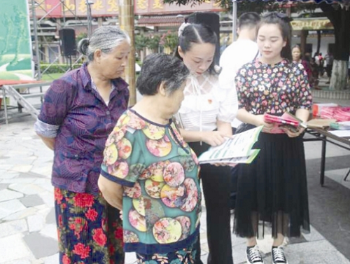 Staff members introduce information regarding energy saving and consumption reduction to the public at the opening ceremony of the 2020 Energy Conservation Publicity Week. [Photo/Hechi Daily] |