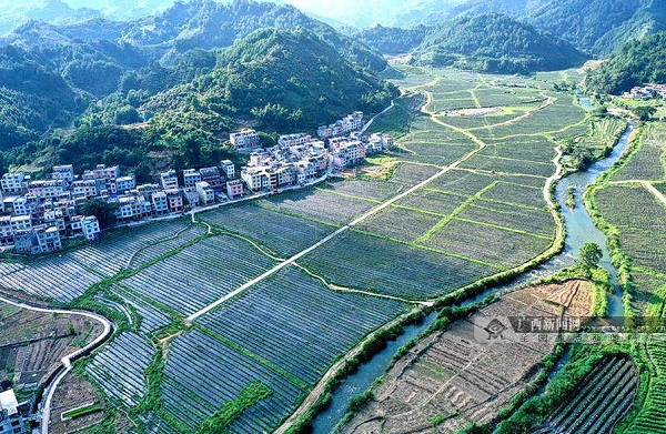 Aerial photo of the pitaya planting base in Yandong town, Bama Yao autonomous county, Hechi. [Photo by Ban Huaxi/gxnews.com.cn] |