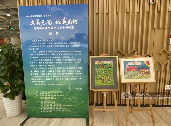 A touring exhibition of art works by teachers and students of Huanjiang Maonan autonomous county, Hechi was held in Nanning Library on Aug 5, showcasing the poverty alleviation achievements of the Maonan ethnic group through education assistance between Guangdong province and Guangxi Zhuang autonomous region.