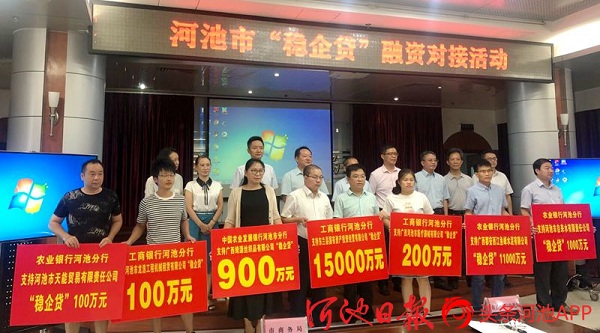 A total of 10 banks and financial institutions in Hechi, including Agricultural Development Bank's Hechi Branch, Industrial and Commercial Bank of China's (ICBC) Hechi Branch, Agricultural Bank's Hechi Branch, and Yizhou Rural Cooperative Bank, issued a total of 462 million yuan ($67.43 million) in loans to 25 companies.