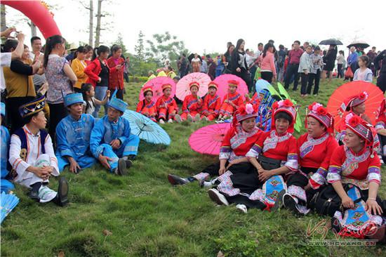 Members of the Mulam ethnic group wear traditional clothing and sing folk songs together. [Photo by Liao Langlang/hcwang.cn] |