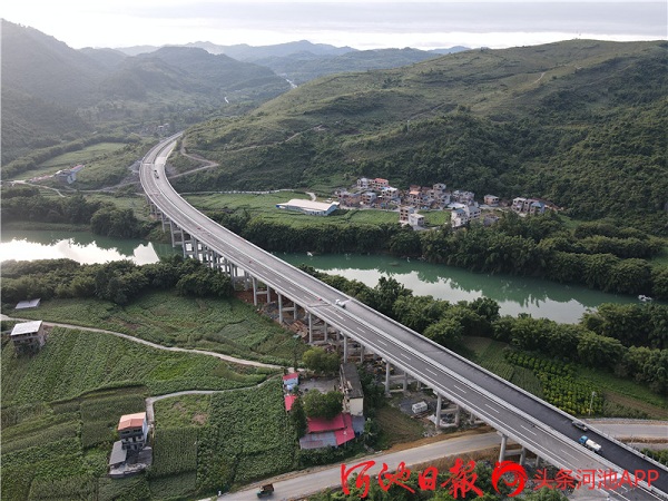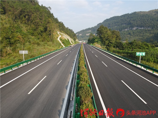The Rongshui-Hechi Expressway has a total length of 105.69 kilometers. The main line adopts two-way four-lane expressway standards, with a design speed of 100 km per hour. It is scheduled to be completed and opened to traffic on Nov 28, one year and one month earlier than originally scheduled.