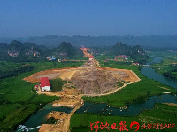 As of now, the Laibin-Du'an Expressway project has measured a total of 12,340.86 mu (822.72 hectares) of red line area, and about 129.91 kilometers of construction land has been actually transferred, including 43.87 km in tunnels, accounting for 96.94 percent of the design. A total of 36 main-line bridges have been started, while 17 of the 18 tunnels have been opened.