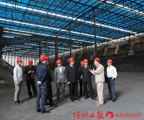 Customs staff members inspect the workshops of Nanfang Non-ferrous Group. [Photo/Hechi Daily] |