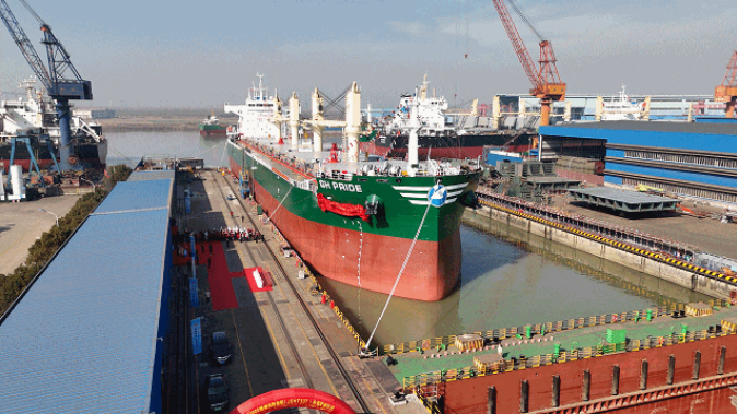 A 63,500-deadweight-ton bulk carrier, GH Pride, built by Jiangsu Haitong Offshore Engineering in Changjiang town, Rugao, was officially delivered and set sail on Jan 14.