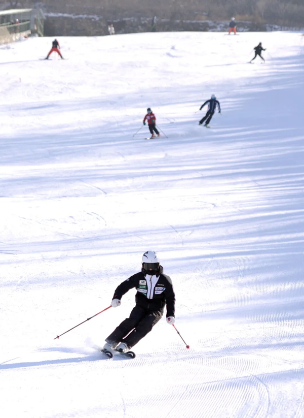 Visitors enjoy skiing at Jiuding Tower Ski Resort. [Photo/WeChat account: jnslyj]
