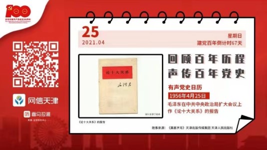 On April 25, 1956, former Chinese leader Mao Zedong issued a report titled "On the Ten Major Relationships" at the Enlarged Meeting of the Political Bureau of the CPC Central Committee. Creator/Source: tjcac.gov.cn