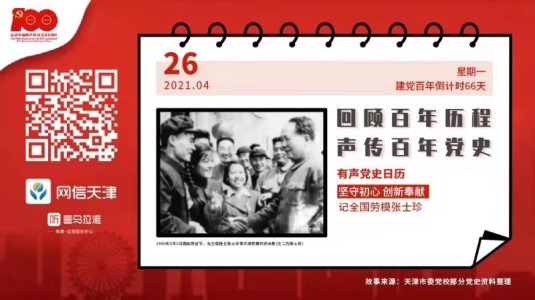 On Labor Day, May 1, 1960, the former leader of China, Mao Zedong, met with Zhang Shizhen and other model workers from Tianjin. Creator/Source: tjcac.gov.cn