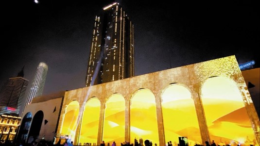 The Italian-Style Tourist Area in Tianjin had a rehearsal of the immersive naked-eye 3D light show in advance of the May Day holiday. Different types of lights set off each other in a gorgeous display. Creator/Source: Wang Jin