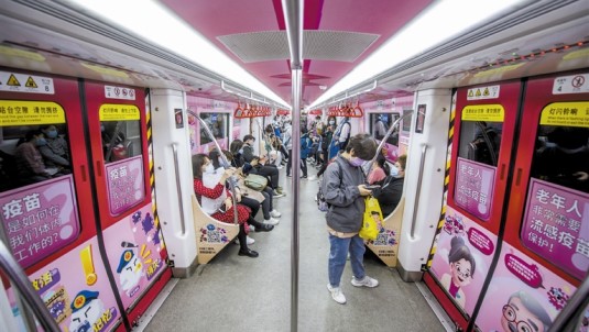 To coincide with China Vaccination Day, April 25, Tianjin Metro Line 1 launched a train promoting vaccine knowledge and popular science services to the public. Creator/Source: Cao Tong