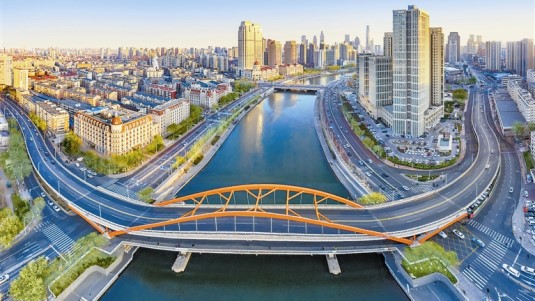 The Jingang Bridge over the Haihe River dates back to 1903. In view of its age and severe damage, the local government decided to rebuild it in 1996. The new version is a double-layer arch structure, in which the lower layer was constructed as a steel and concrete box girder bridge based on the old piers. Creator/Source: Chen Shaoquan