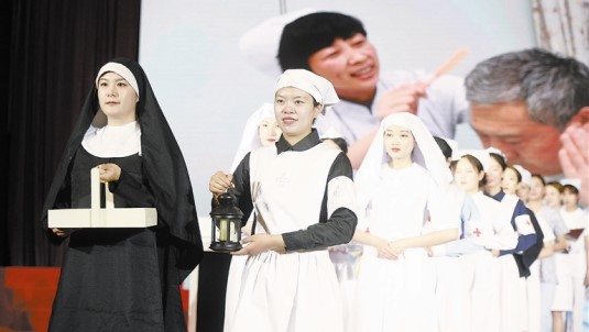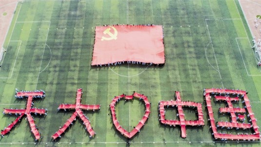 Tianjin University held a comprehensive sports meeting on April 24, attracting more than 4,500 competitors. At the opening ceremony, the college students arranged red silk to spell out in characters that they love China. Creator/Source: Zhang Li and Yu Fuwang