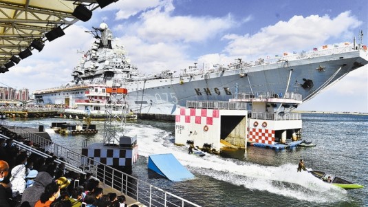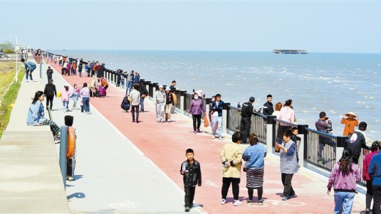 On the first day of the May Day holiday, Tianjin's Binhai New Area attracted many residents and tourists with its checkbox cultural tourism route. The picture shows people flocking to the Tianjin TEDA Aircraft Carrier Theme Park. Creator/Source: Liu Naiwen