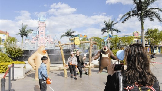 The picture shows a family enjoying the Tianjin Fantawild Theme Park. Creator/Source: Zhou Wei