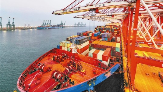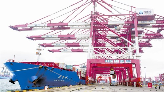 Tianjin Port launched a marine highway shipping mode which is more time-efficient in logistics operations. It will inject new kinetic energy into the construction of China's north-south shipping channel and provide support for the new development paradigm featuring dual circulation in which domestic and overseas markets reinforce each other. Creator/Source: Zhou Wei and Bo Cheng