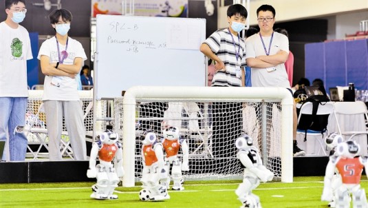 During the fifth World Intelligence Conference, many professional teams brought their newly developed robots to compete at the RoboCup China Open. Creator/Source: Liu Naiwen